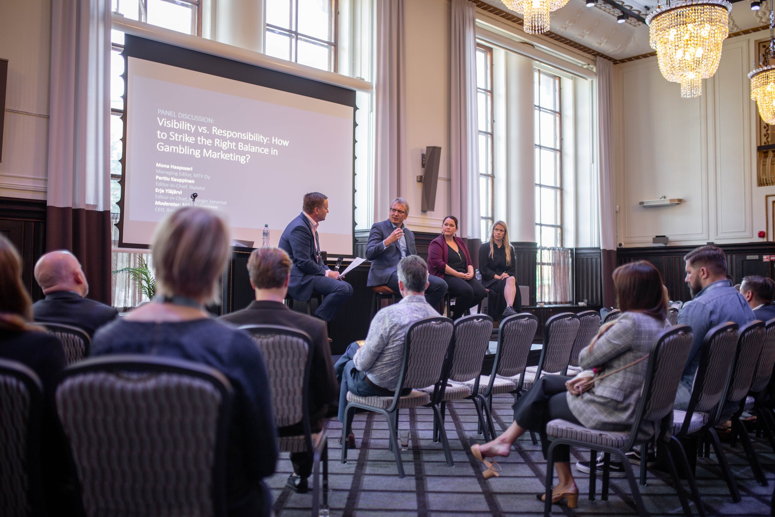 Toisessa paneelissa sekä päivän viimeisessä ohjelmaosiossa kotimaisen median edustajisto Mona Haapsaari (MTV Oy), Perttu Kauppinen (Iltalehti) sekä Erja Yläjärvi (Helsingin Sanomat) keskustelivat, kuinka löydetään tasapaino rahapelien markkinoinnin näkyvyyden sekä vastuullisuuden välillä.