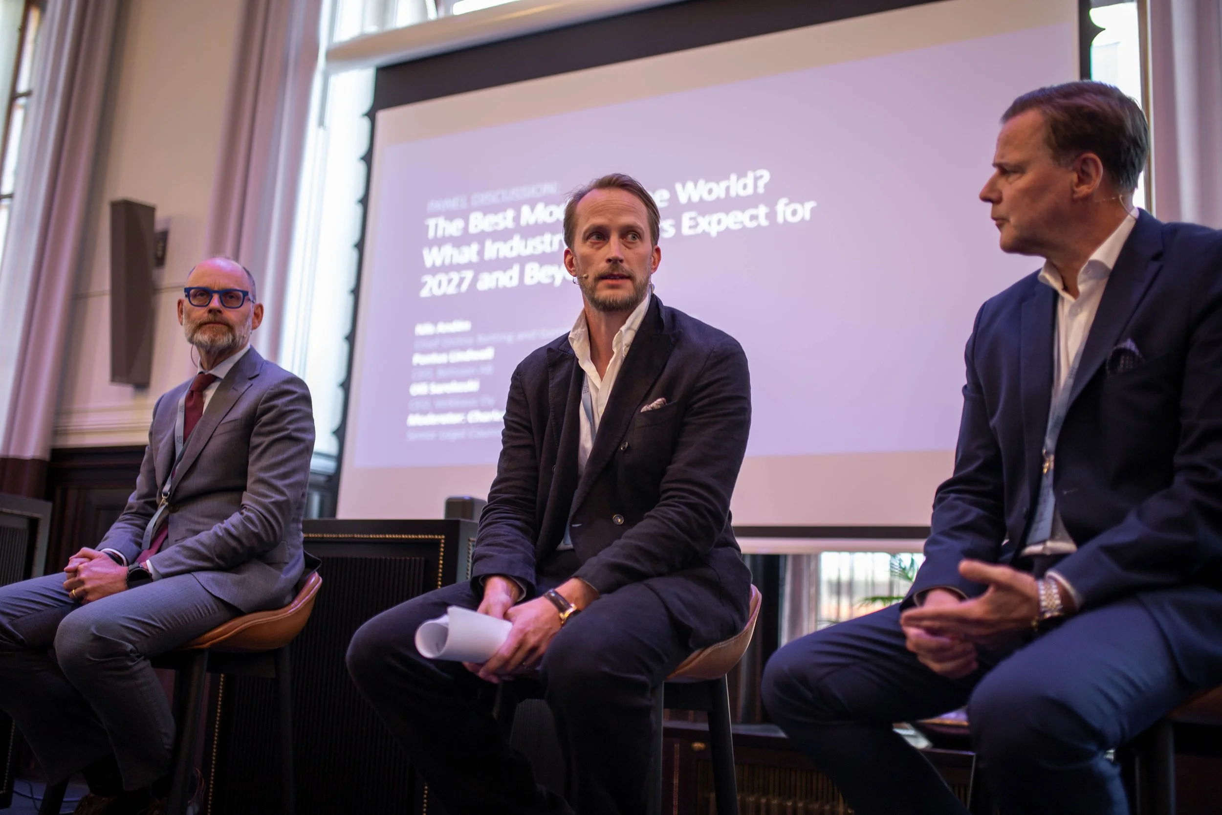 Päivän päättivät kaksi paneelikeskustelua. Ensimmäisessä keskustelussa Nils Andén (Chief Online Betting and Gaming Officer, FDJ UNITED), Pontus Lindwall (CEO, Betsson AB) ja Olli Sarekoski (CEO, Veikkaus Oy), moderaattorina Charles Crisp (Senior Regulatory Legal Counsel, Flutter Entertainment), avasivat näkemyksiä tulevaisuuden rahapelijärjestelmästä: mitä alan johtavat toimijat odottavat vuodelta 2027 ja sen jälkeen.